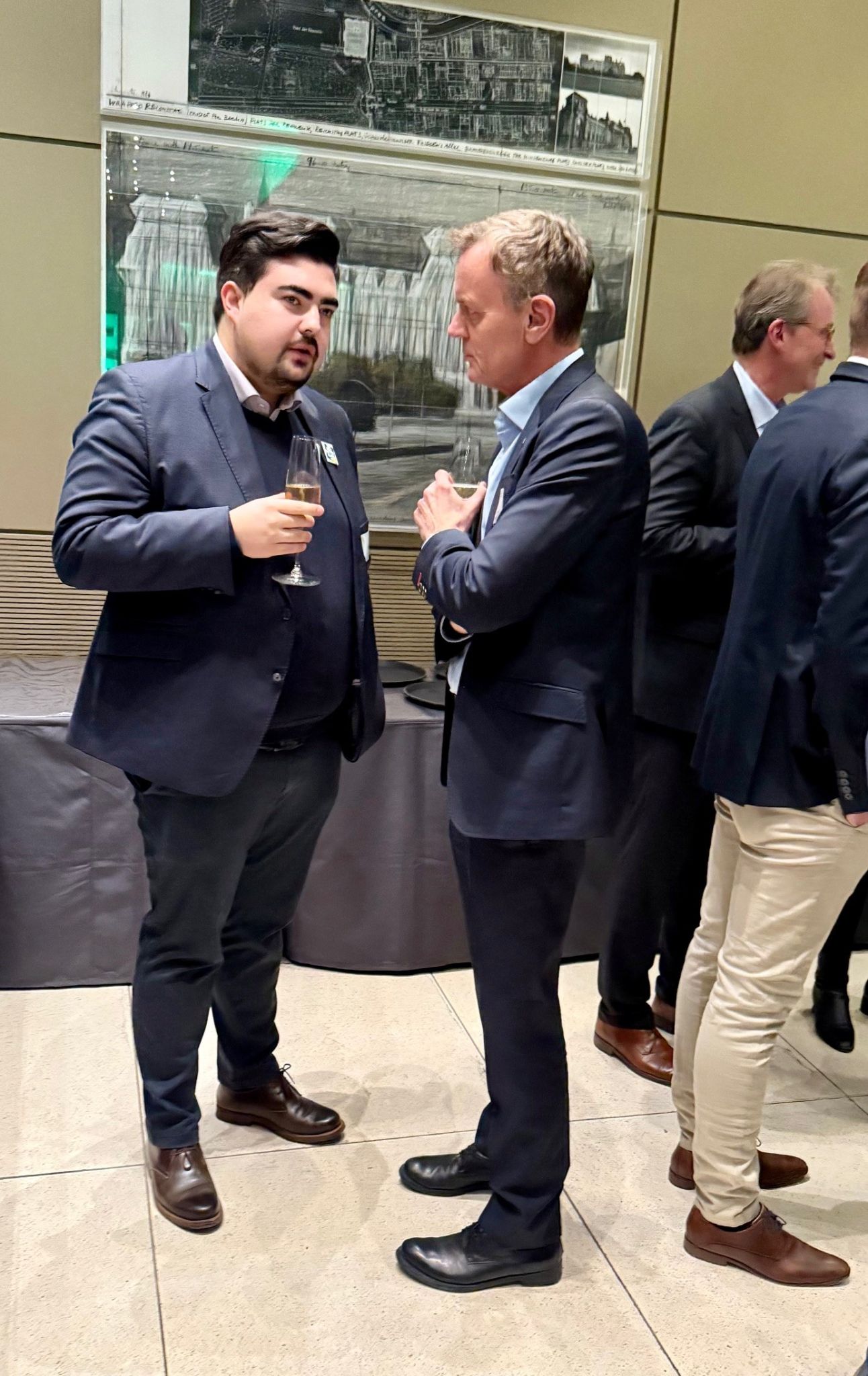 Während des Parlamentarischen Abends ergaben sich viele weitere Gespräche: Neben Bundesminister Rainer (CSU) sprachen Maximilian Habisreutinger und GD Holz Geschäftsführer Thomas Goebel u.a. mit dem Vorsitzenden des Landwirtschaftsausschusses, Hermann Färber (CDU) und mit Niklas Wagener, waldpolitischer Sprecher von Bündnis 90/Die Grünen.